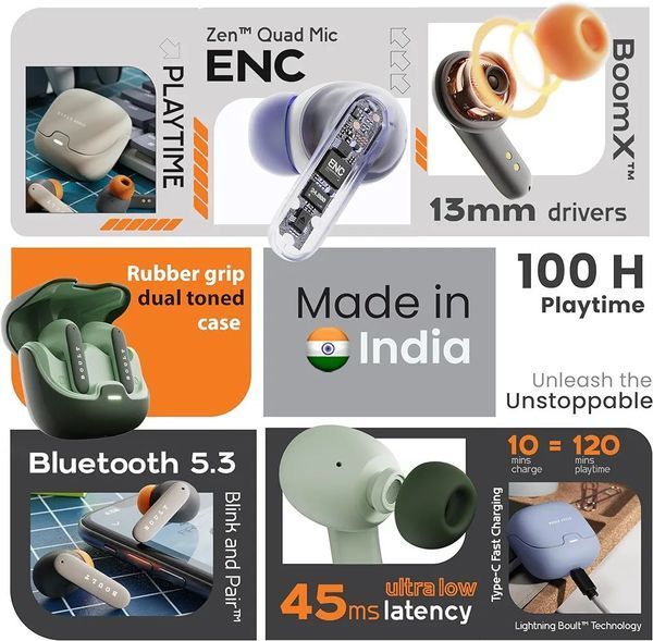 100H Playtime】The Boult Z40 Pro earbuds redefine endurance with an astonishing 100-hour playtime on a single charge. Enjoy uninterrupted music, podcasts, or calls for days on end, making them perfect for long journeys, work marathons, or extended outdoor adventures.